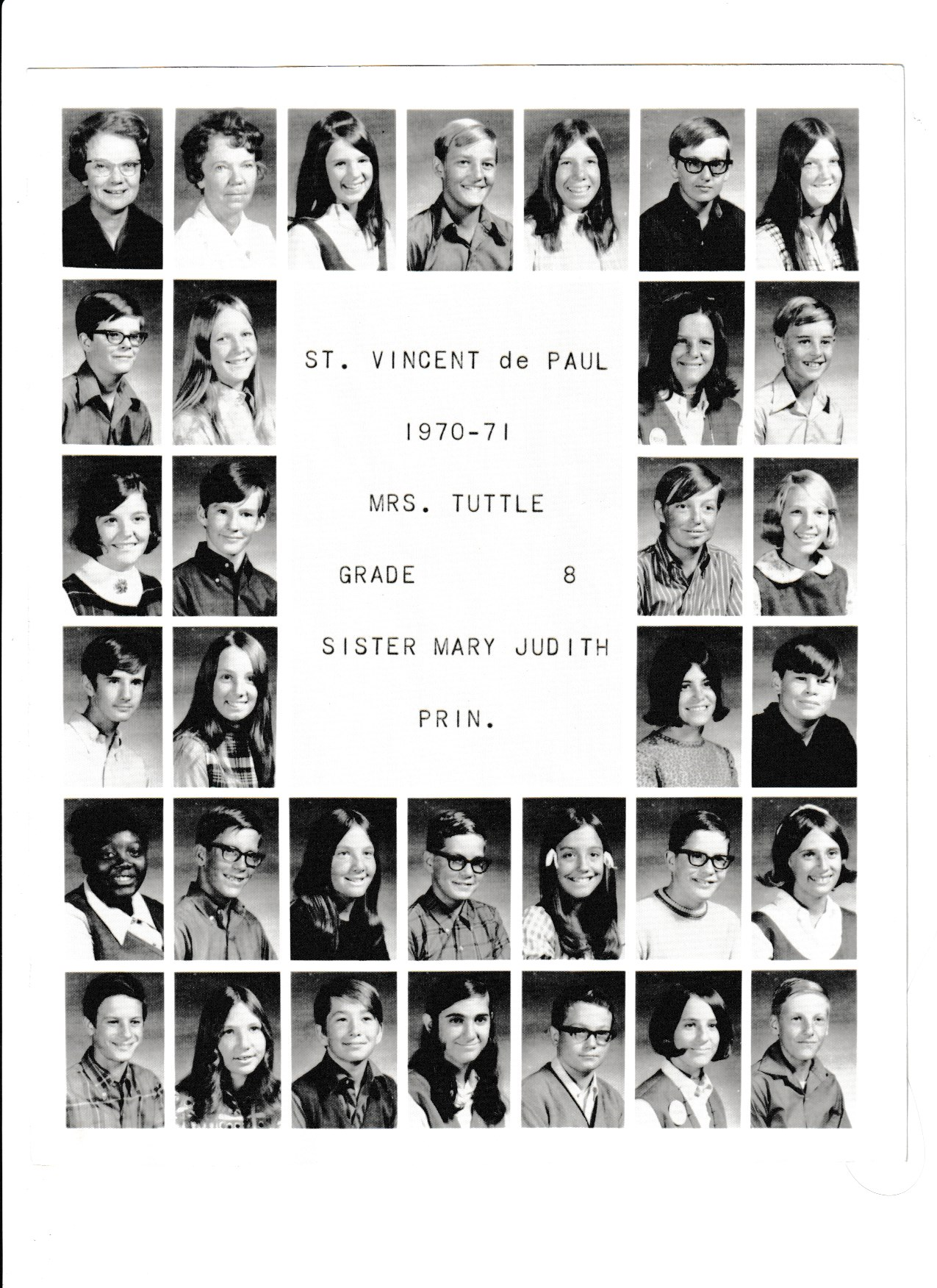 1971 class Mrs Tuttle grade 8